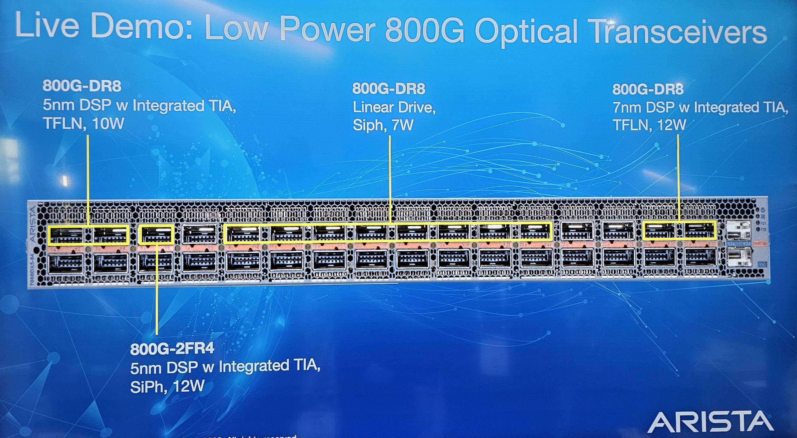 FR4/2xFR4/FR8 400G/800G – These modulate wavelengths of light on a single-mode fiber. Various versions exist with a max reach of 2km to 10km. This standard is the highest power due to loss from multiplexing light onto a fiber.